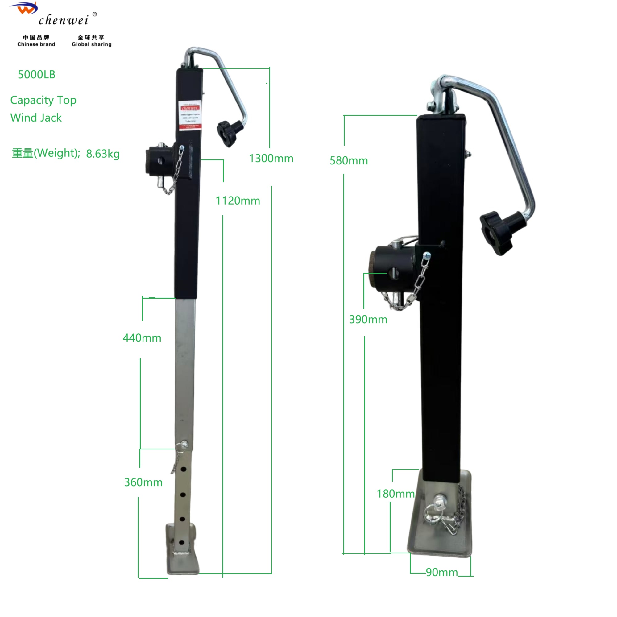 Built with premium A3 steel, the jack is coated with a black powder finish and galvanized surface, offering excellent resistance against rust, water, mud, and road salt—perfect for marine and off-road environments.