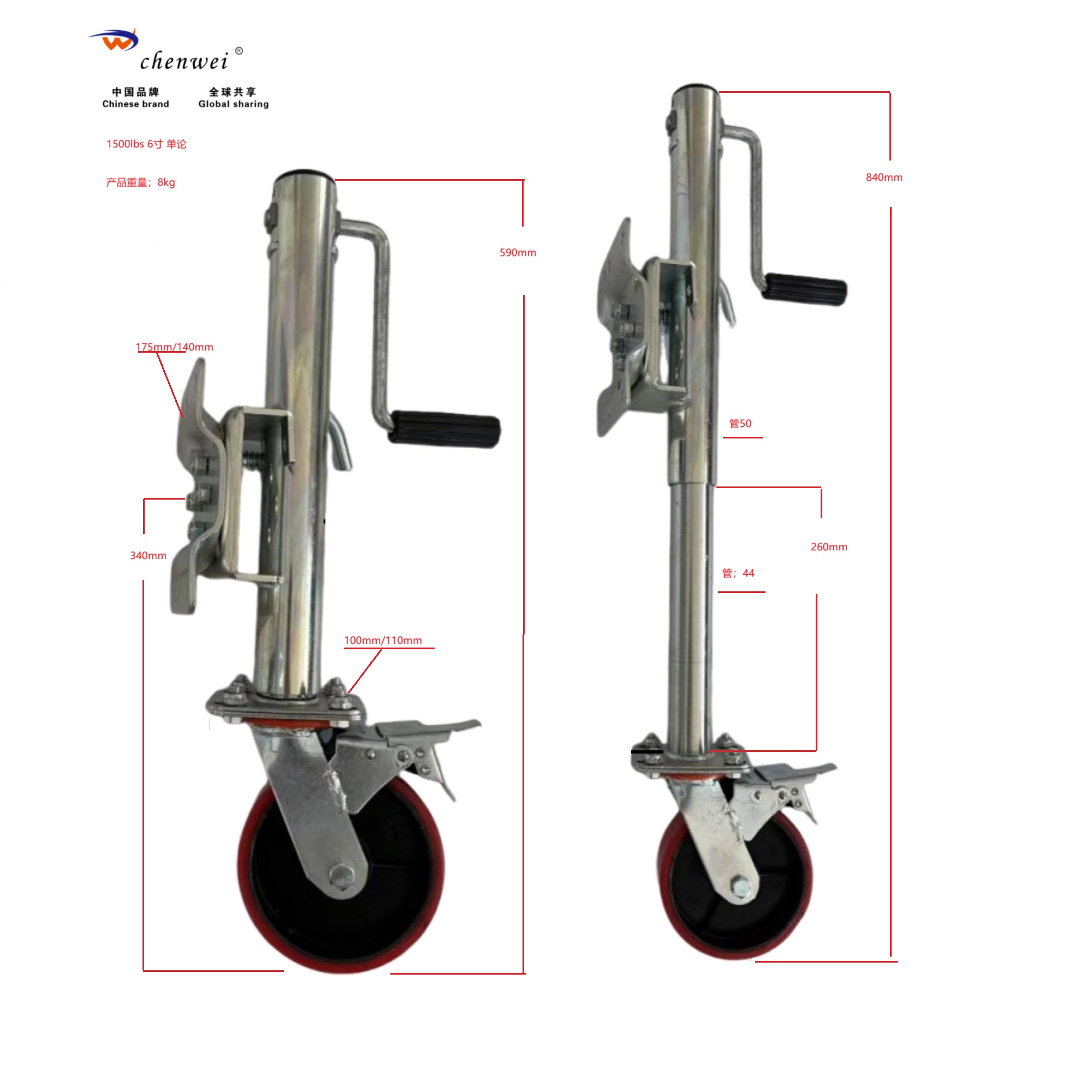 For users who need higher stability and load-bearing capacity, Chenwei launched this dual-wheel swivel jack with a maximum working load of up to 1500 pounds, suitable for heavier trailers.